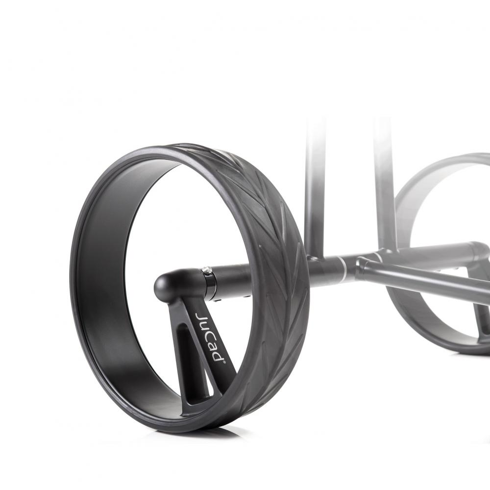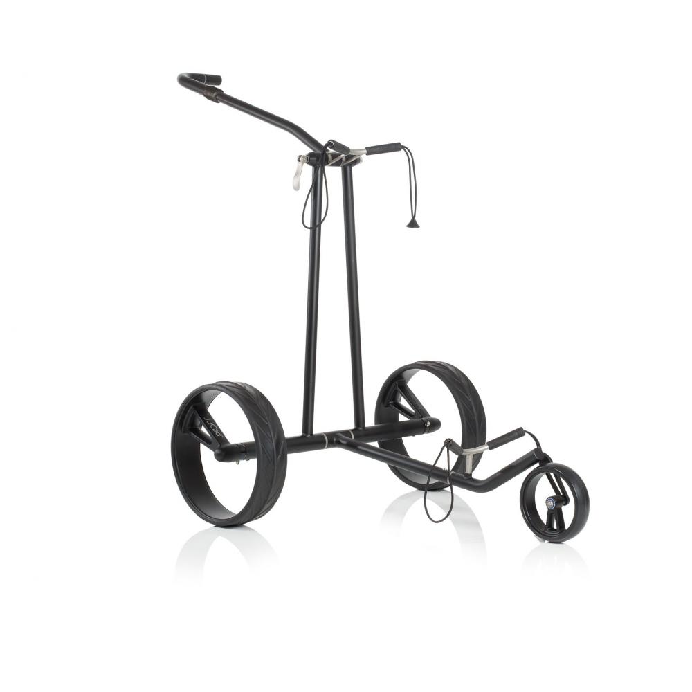 Wie ein Phantom gleitet der JuCad Phantom Golf Elektrocaddy aus Titan über den Golfplatz. Seine unvergleichlichen Designer Einspeichenfelgen aus Vollcarbon sind dabei schon eine Sensation für sich. Der schlanke Titanrahmen mit der eleganten Griffstange mit stufenloser Geschwindigkeitsregelung lassen den JuCad Phantom Elektrotrolley nahezu über das Fairway schweben.