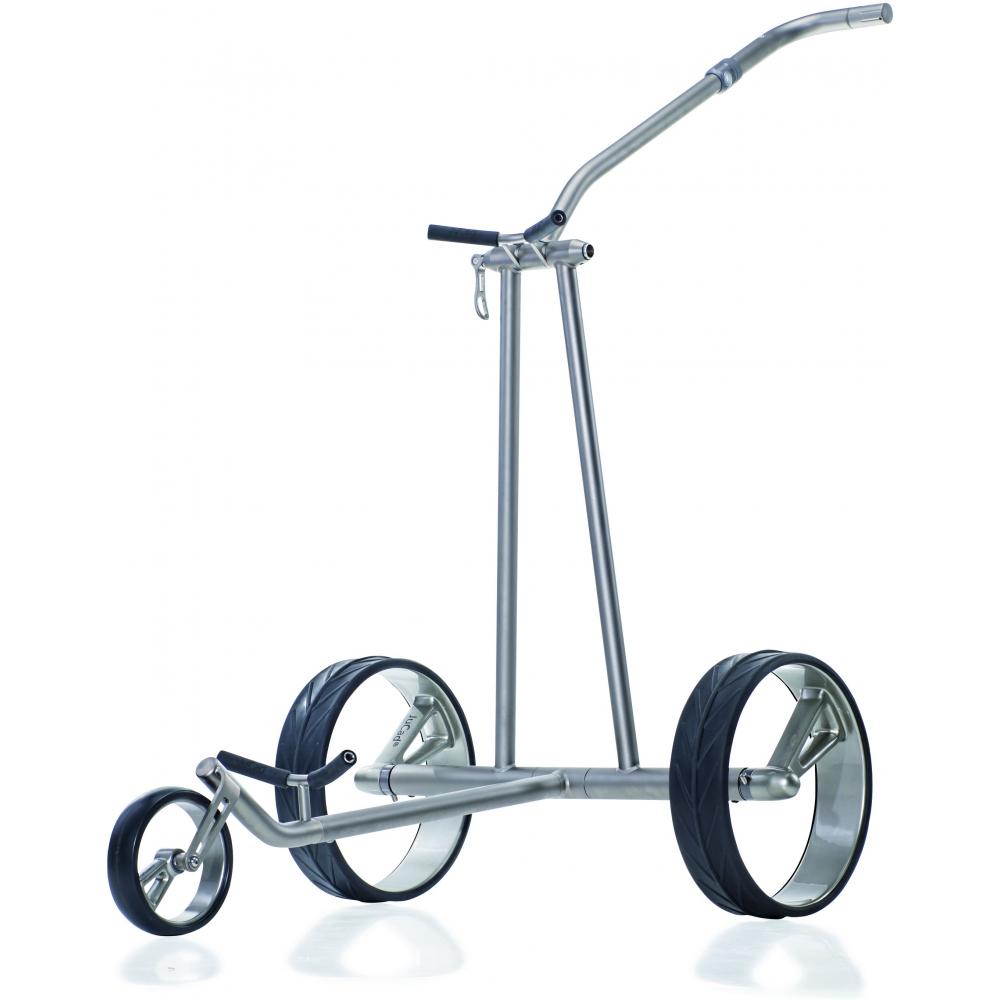 Wie ein Phantom gleitet der JuCad Phantom 3.0 Golf Elektrocaddy aus Titan über den Golfplatz. Seine unvergleichlichen Designer Einspeichenfelgen aus Vollcarbon sind dabei schon eine Sensation für sich. Der schlanke Titanrahmen mit der eleganten Griffstange mit stufenloser Geschwindigkeitsregelung lassen den JuCad Phantom Elektrotrolley nahezu über das Fairway schweben.