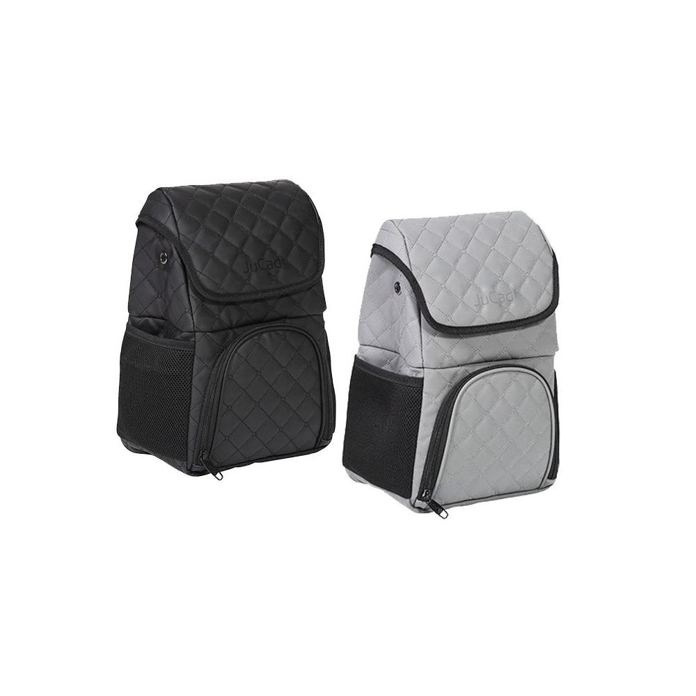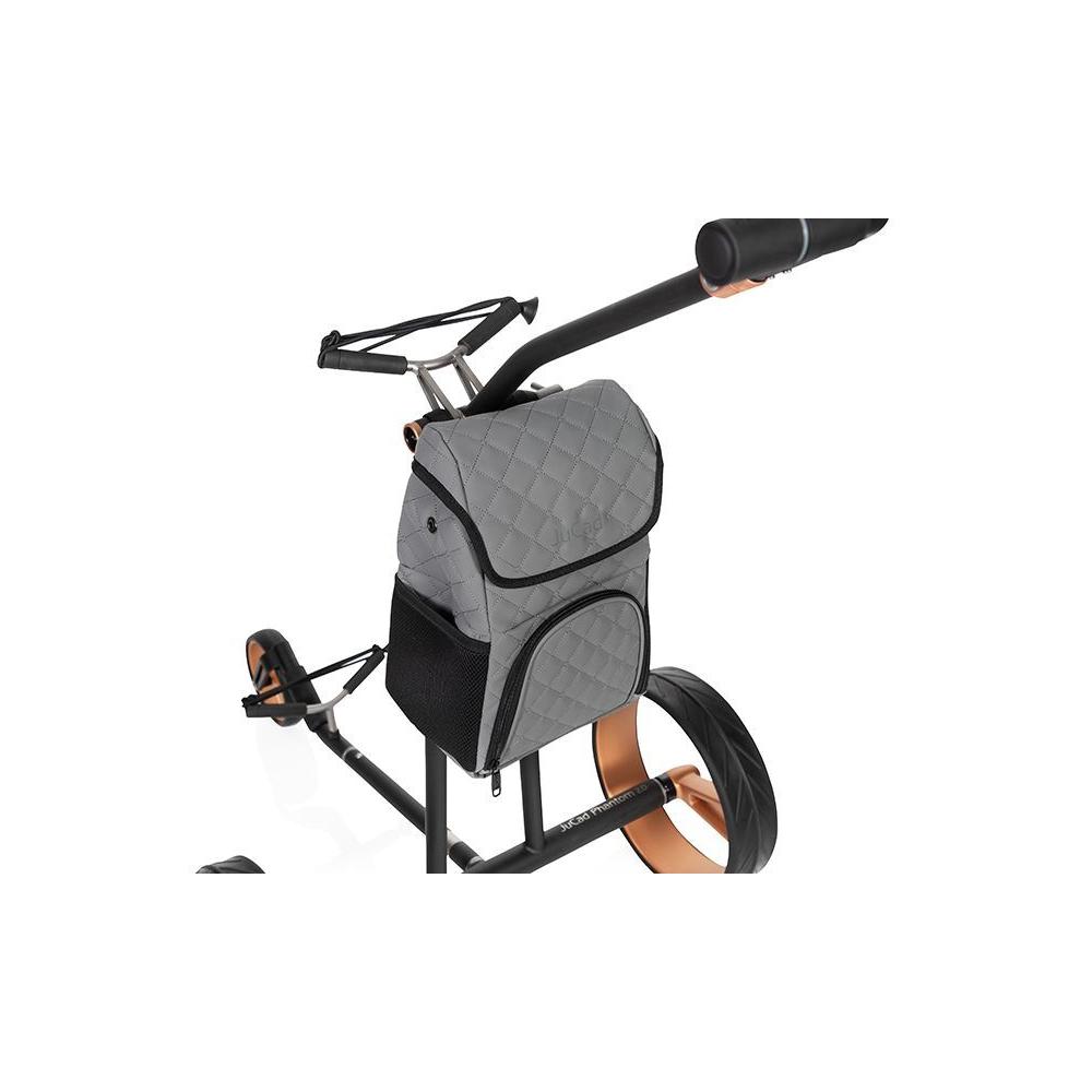 In der elegant gesteppten Anhängetasche für alle JuCad Golfcaddys können Golfzubehör und Wertsachen in zwei unterteilten Fächern untergebracht werden. Im oberen Bereich befindet sich ein zusätzliches Fach mit Reißverschluss, im unteren Bereich sorgt ein extra Kühlakkufach für kalte Getränke.