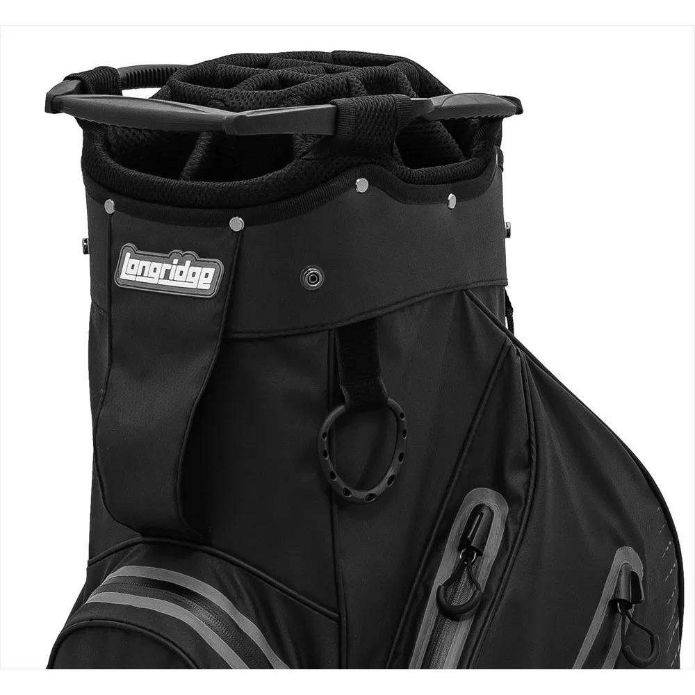 Die wasserdichte Longridge Cart Bag besteht aus leichtem Material mit versiegelten Nähten und wasserabweisenden Reißverschlüssen. Diese ultraleichte Tasche (2,2 kg) verfügt über sieben nach vorne gerichtete Taschen für einfachen Zugriff und bietet reichlich Stauraum,