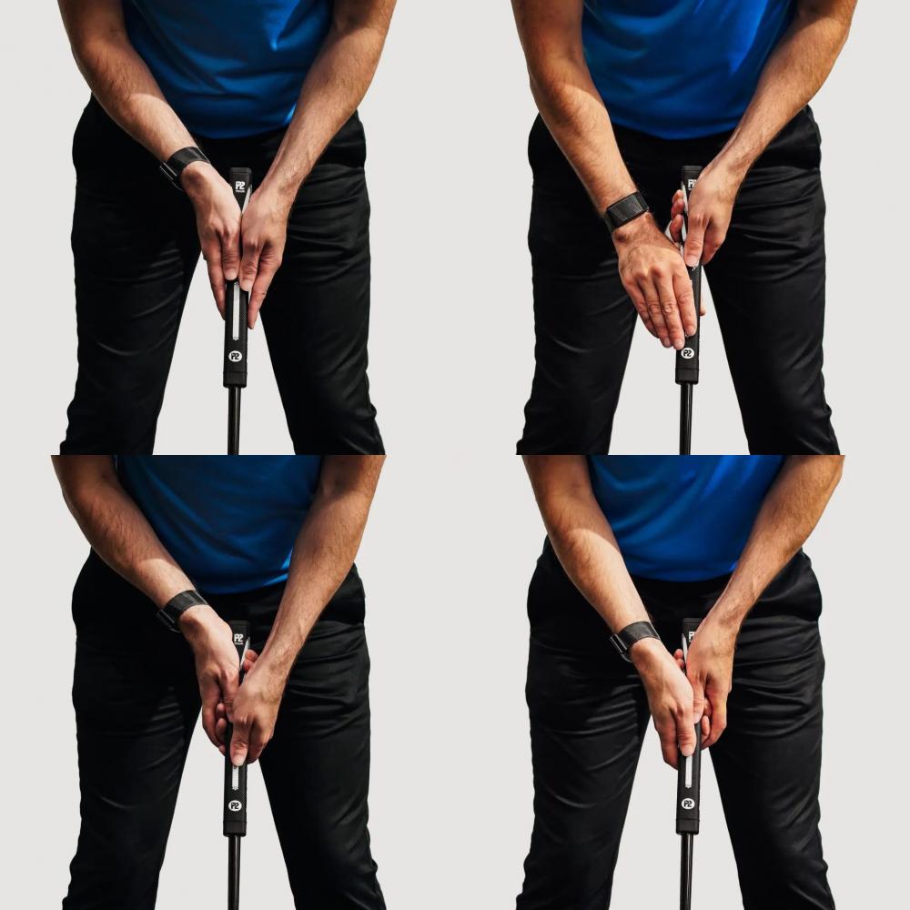 • Der vergrößerte Handgelenkswinkel (Ulnardeviation) begrenzt die Bewegungsspielraum der Hände und Handgelenke und verhindert einen zu großen Griffdruck während des Putts. In dieser Handgelenksposition fungiert der Putter als Verlängerung des Führungsarms.
