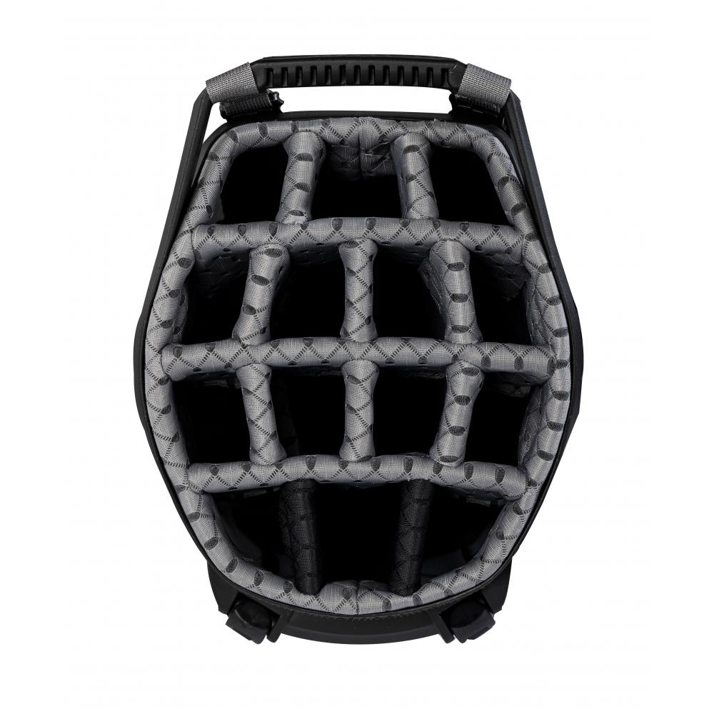 - 2-in-1: Die VLO-Technologie präsentiert die perfekte Weiterentwicklung einer Golfbag hin zu einem Hybridbag, d.h. Standbag und Cartbag in einer Tasche! Das Standsystem wurde dafür abgesenkt und neu ausbalanciert, sodass die obere Halterung des Golftrolleys die Tasche „greifen“ kann, ohne durch das Standsystem behindert zu werden