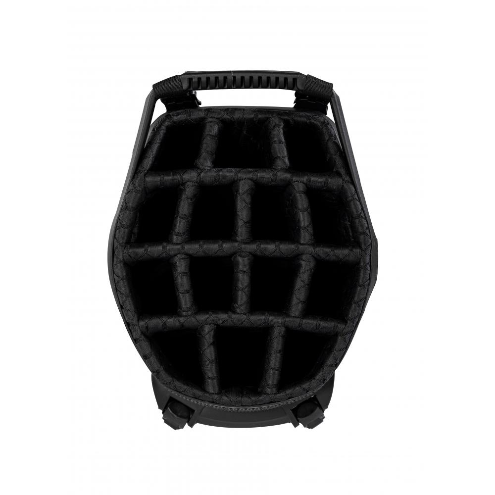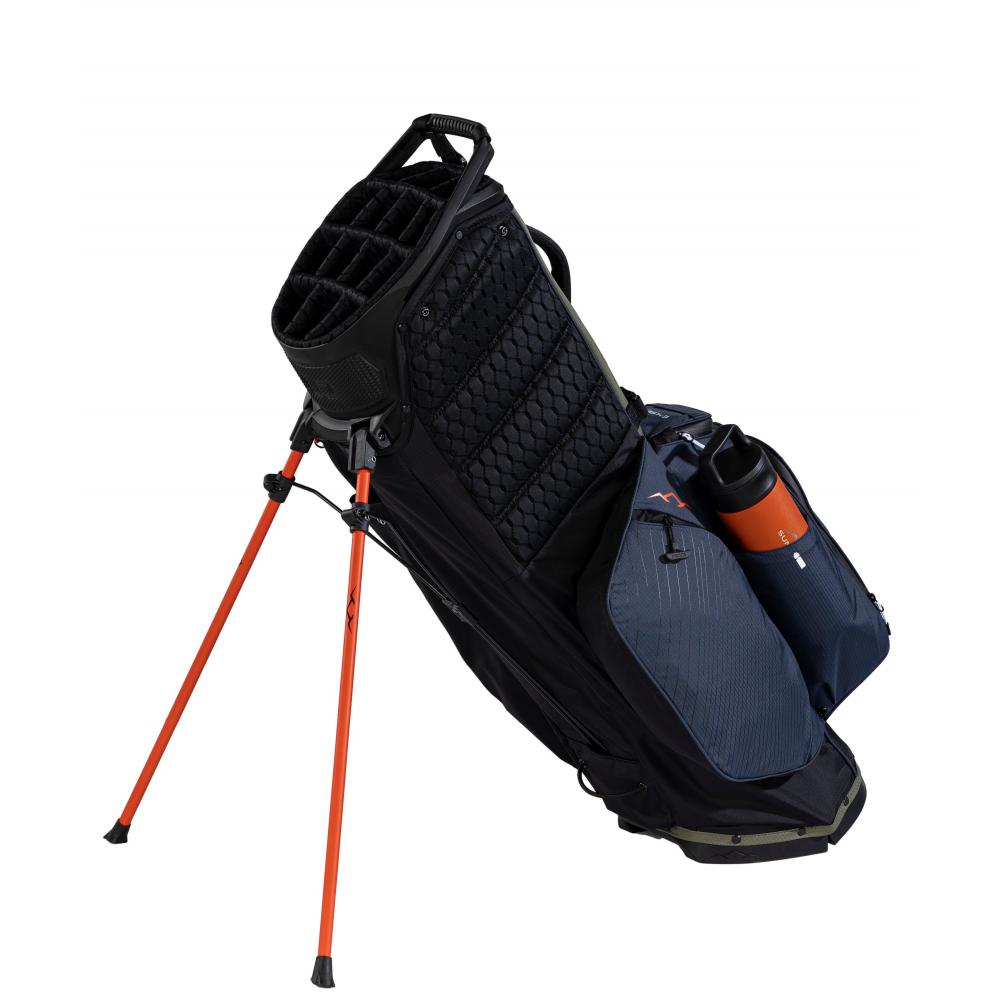 - 2-in-1: Die VLO-Technologie präsentiert die perfekte Weiterentwicklung einer Golfbag hin zu einem Hybridbag, d.h. Standbag und Cartbag in einer Tasche! Das Standsystem wurde dafür abgesenkt und neu ausbalanciert, sodass die obere Halterung des Golftrolleys die Tasche „greifen“ kann, ohne durch das Standsystem behindert zu werden